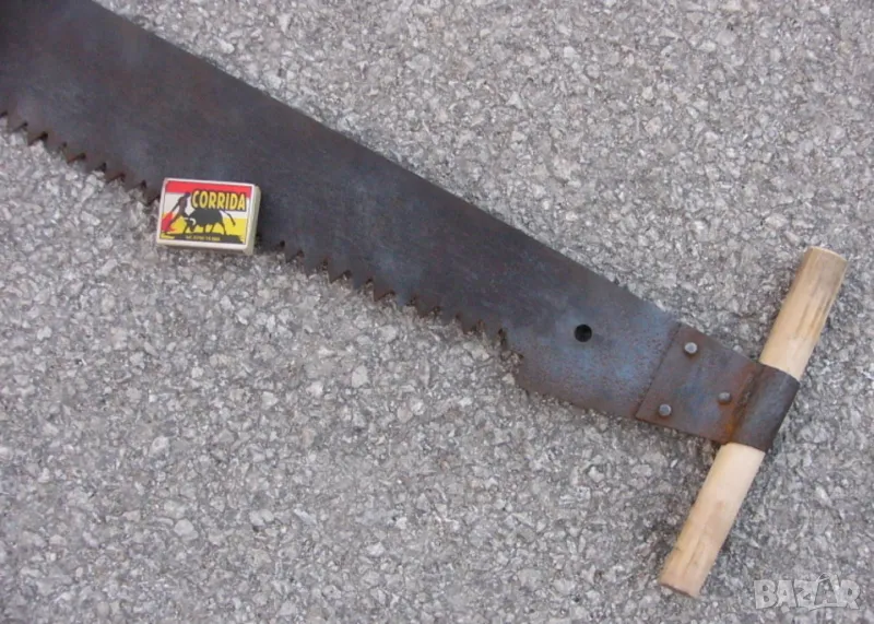 • АРТИКУЛ: УНИКАТ - Античен Немски ТРИОН тип шаран Бичкии Джага с дръжки Антични инструменти Триони за рязане на дърво трупи;