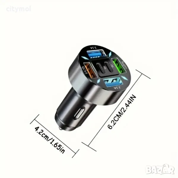 Универсално зарядно за автомобил 6 USB(4 x USB и 2 x Type C ).