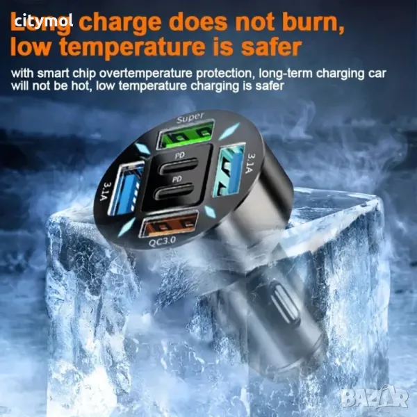 1. LED светлина 2. 6 порта за зареждане на до 6 устройства едновременно. 3. Съвместим с различни модели, входно напрежение от 12 до 24 V. 4. Зареждайте всички телефони, цифрови фотоапарати и таблети.