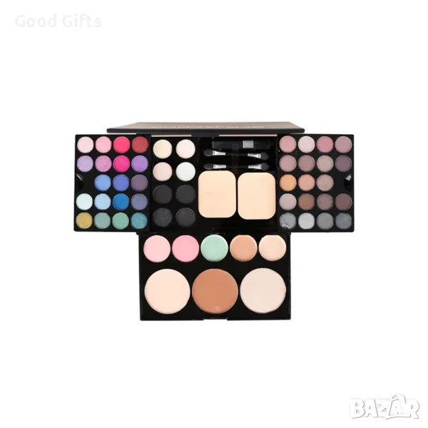Ако държите на своята визия и елегантен вид, тази палитра за гримове ще ви осигури всичко от което се нуждаете за да постигнете това. Тя има компактен дизайн и се побира в дамска чанта, което ви дава възможност да разчитате на нея винаги когато ви е необходимо. Палитрата съдържа всичко необходимо, за да озарите своето лице, като премахнете несъвършенствата по кожата, очертаете скулите, подчертаете бузите и приключите с използването на сенки за очи, като палитрата ви осигурява богато разнообразие за всички случаи като: дневен грим, вечерен грим, по – специални случаи. Тази комбинирана палитра за гримове ще зарадва всяка дама, която държи на външния си вид. Тя е идеален подарък за празници като рожден ден, Коледа, Нова година, осми март. Опаковката и дизайна са изисквани и показват високо качество и клас.