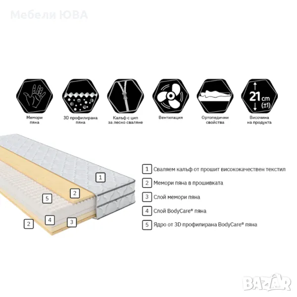 Препоръчваме използването на ламелна подматрачна рамка, която позволява по-добрa вентилация и увеличава комфорта.