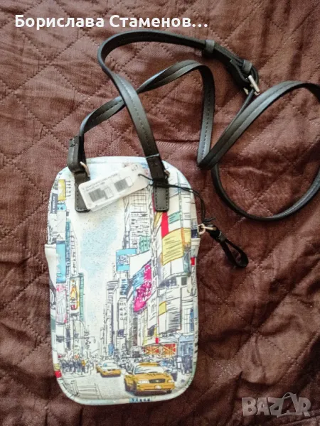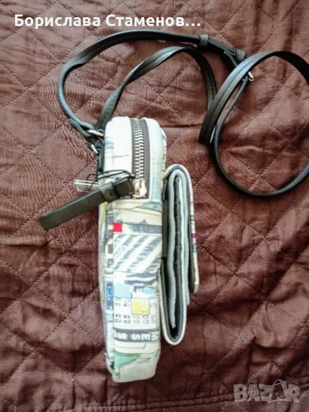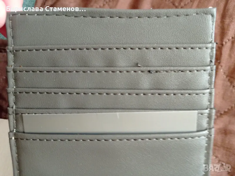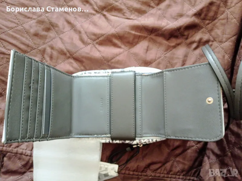 състои от две части – голямо отделение, затварящо се с цип и слот за карти и