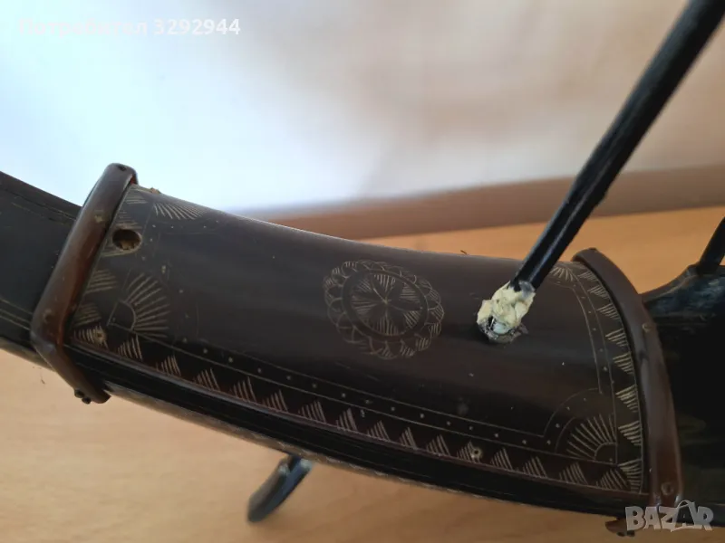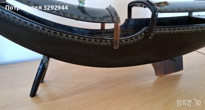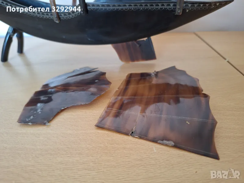 Кораб, ръчна изработка с инкрустации и платна от кост от костенурка.Произход Виетнам.Има нужда от реставрация на мачтите и платната.Дължина 35 см