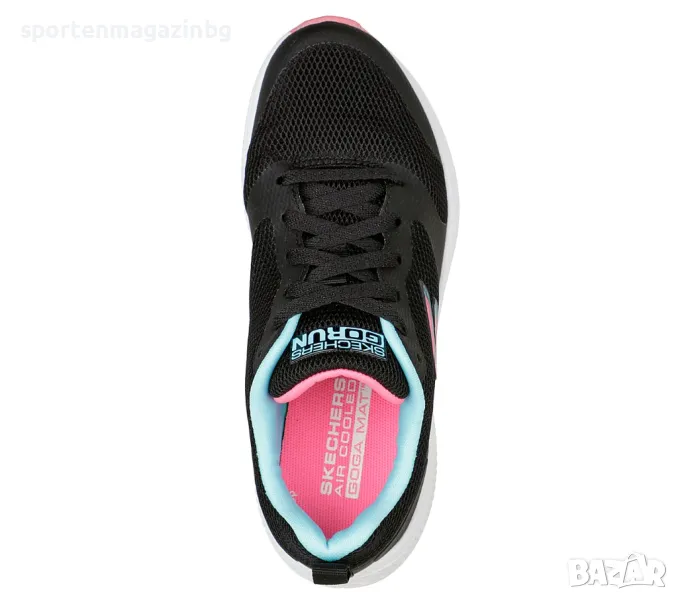 Стабилна конструкция от мрежа и синтетични наслагвания за по-голяма издръжливост и подкрепа. Пълно дантелено затваряне с подплатен език и яка. Нисък профил за по-голяма свобода при движение. Допълнително подсилени в областта на петата и пръстите за сигурност и стабилност. Текстилна кука в задната част за по - лесно обуване. Надпис SKECHERS Go Run върху езика и контрастно лого от външната страна. Вътрешната част е покрита с текстилна облицовка. Skechers Air-Cooled Goga Mat дишаща стелка с изключително високо ниво на омекотяване. Междинната подметка предлага отлични омекотяващи свойства и анатомична опора за краката, тя абсорбира силата на удара при неравни повърхности. Гъвкава гумена подметка за перфектно сцепление.