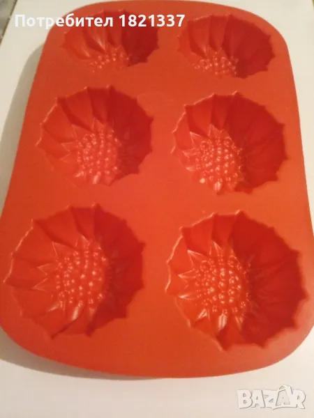 Силиконова форма за мъфиниРазмери 27 см на 18 см. Размери на отделната формичка: диаметър 7 см, дълбочина 3 см.Max 230 C°, - 40 C°.