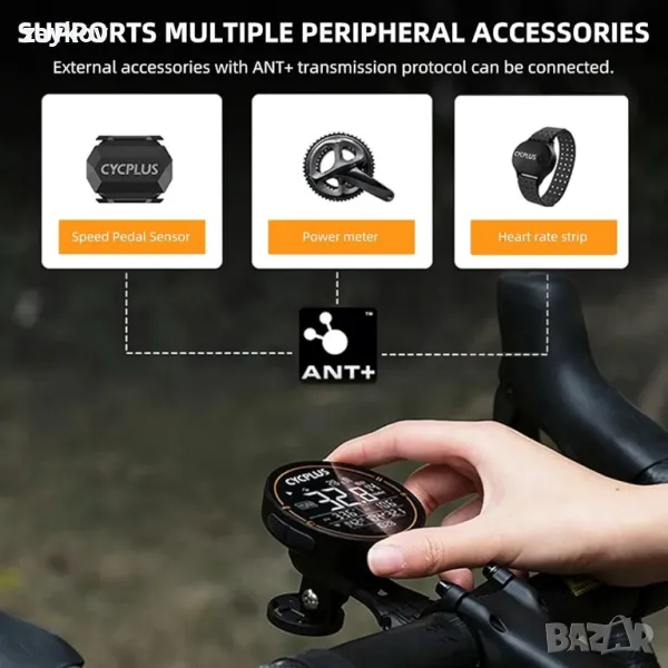 ANT+ SYNC СЕНЗОРИ И ПРИЛОЖЕНИЯ: Компютърът за велосипеди Rock Bros. и Syke Plus, съвместно брандиран, поддържа използването на приложението XOSS, което ви позволява да наблюдавате по-ясно вашите данни за колоездене на вашия мобилен телефон. Компютърът за велосипеди поддържа широк набор от периферни аксесоари и може да свързва външни сензори като сензори за скорост на педалите, ленти за сърдечен ритъм, измерватели на мощност и други сензори, които имат протокол ANT+, за да ви осигурят по-пълно колоездене.