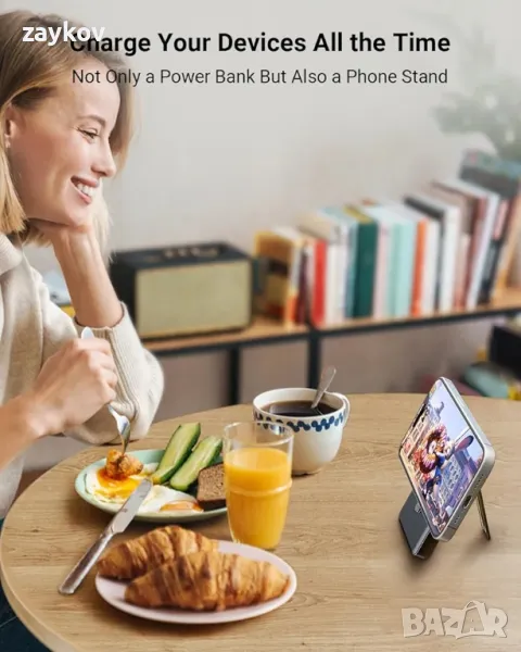 Не е подходящ за магнитни калъфи: За безжично зареждане се уверете, че телефонът ви има MagSafe или магнитен калъф, ако предпочитате да носите калъф за телефона си. Преносимото зарядно устройство за Apple Watch използва най-новата технология за магнитно засмукване, зареждайки веднага след щракване. Преносимата