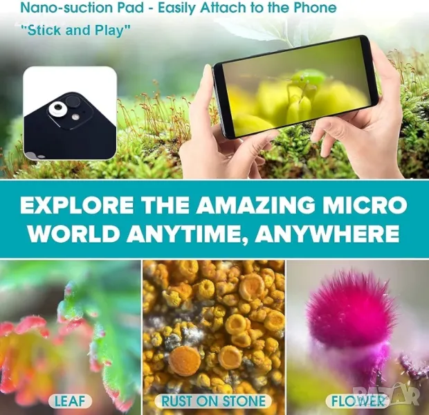 Най-добрият начален и най-малкият микроскоп в света. Можете да го вземете със себе си, да правите страхотни снимки и да ги споделяте с приятелите си по всяко време и навсякъде.