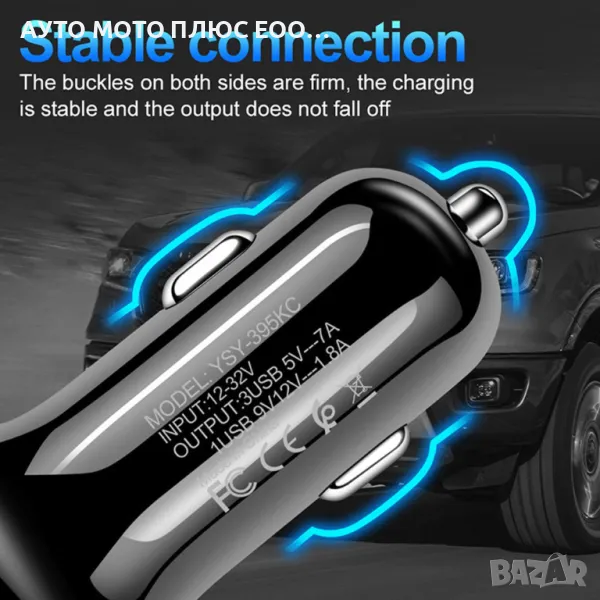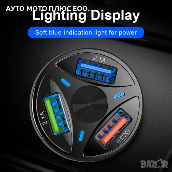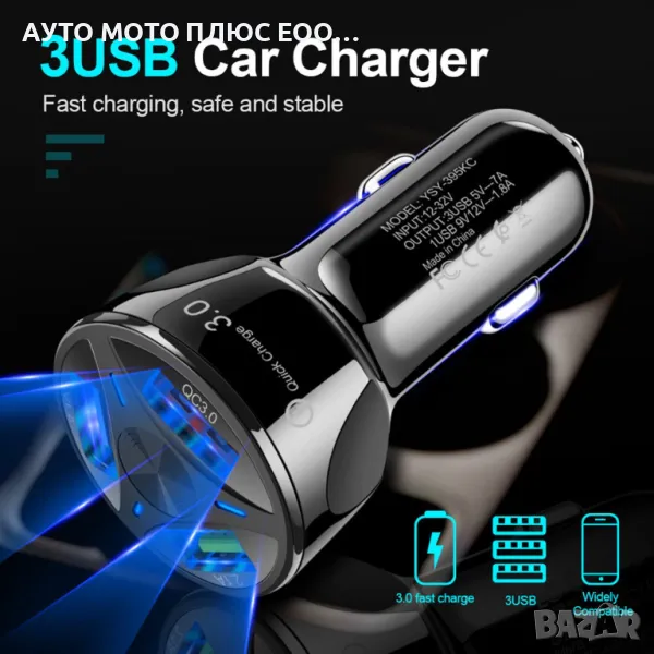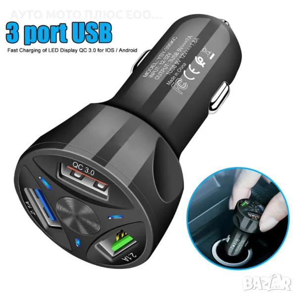 Универсален адаптер за автомобил с 3 х USB Ports, който поддържа Qc 3.0 порт за бързо зареждане. Два порта за бързо зареждане и един порт за много бързо зареждане 3.0, ще можете да зареждате множество устройства по време на пътуването си.