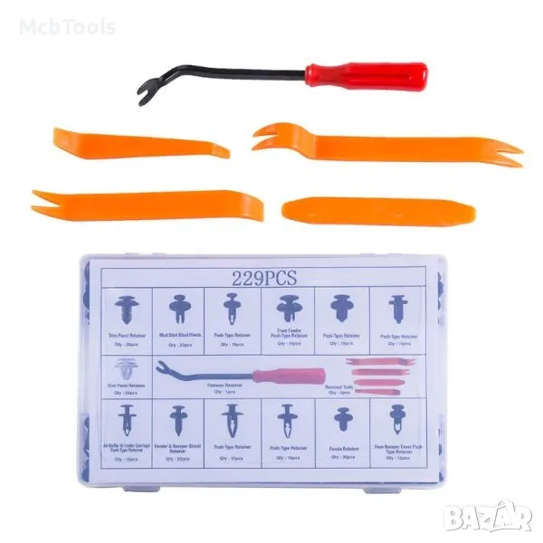 Комплект щипки + инструменти за кори/тапицерия за автомобил 229 части