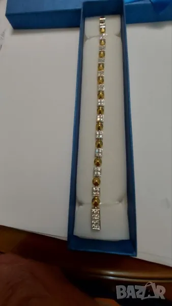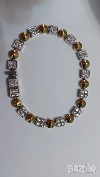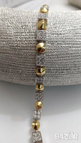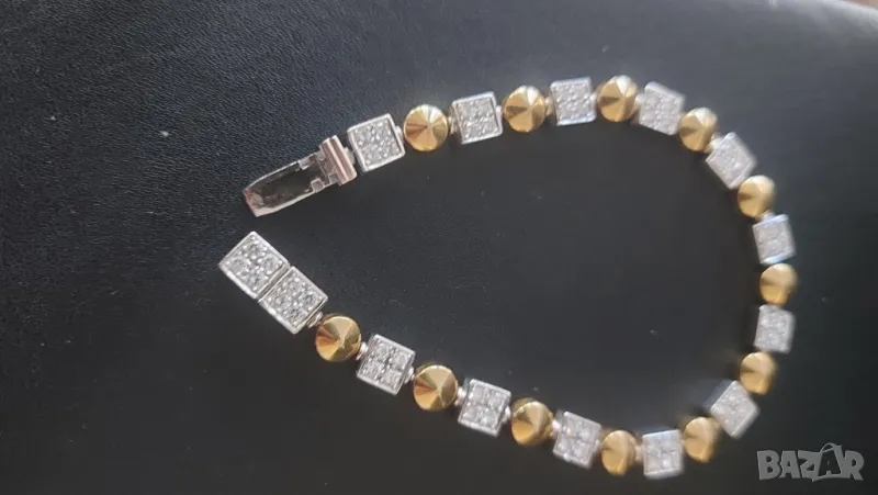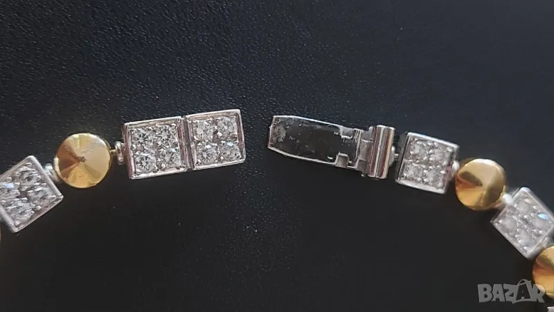 Златна гривна бяло и жълто злато с брилянти 21,5 гр., 18 кр. 56 брилянта по2 мм. Италианска, без забележки.