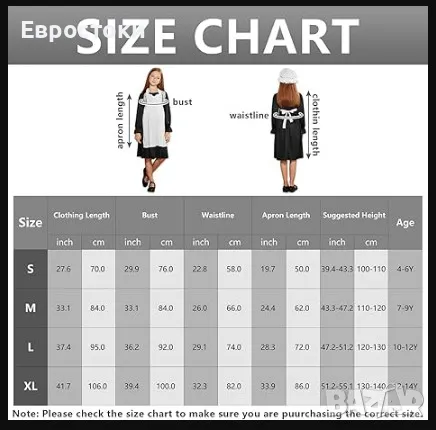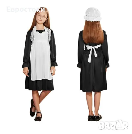 Детски викториански костюм включва 3 части: черна рокля, бяла престилка и шапка.