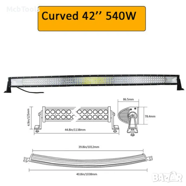 - Мощен извит лед бар от последно поколение, с най-високо качество на изработка. - Лед бара разполага с изключително ярки и силни диоди, осигуряващи перфектно осветяване.