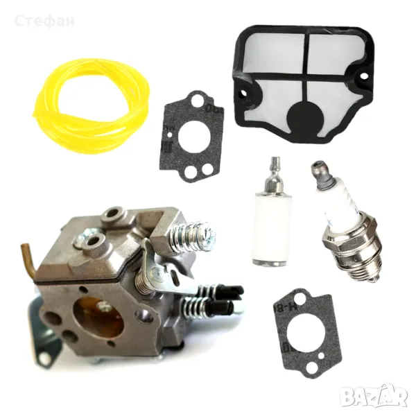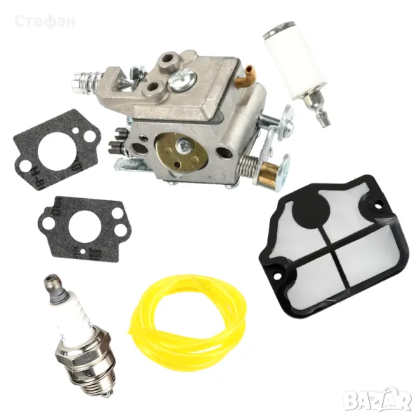 Сет от карбуратор, гарнитури за него, запалителна свещ, горивен и въздушен филтър за Хускварна Husqvarna 36, 41, 136, 137, 141, 142.