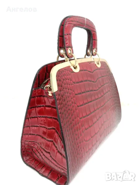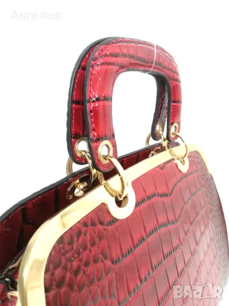 Нова дамска чанта среден размер, червен лак с златист обков