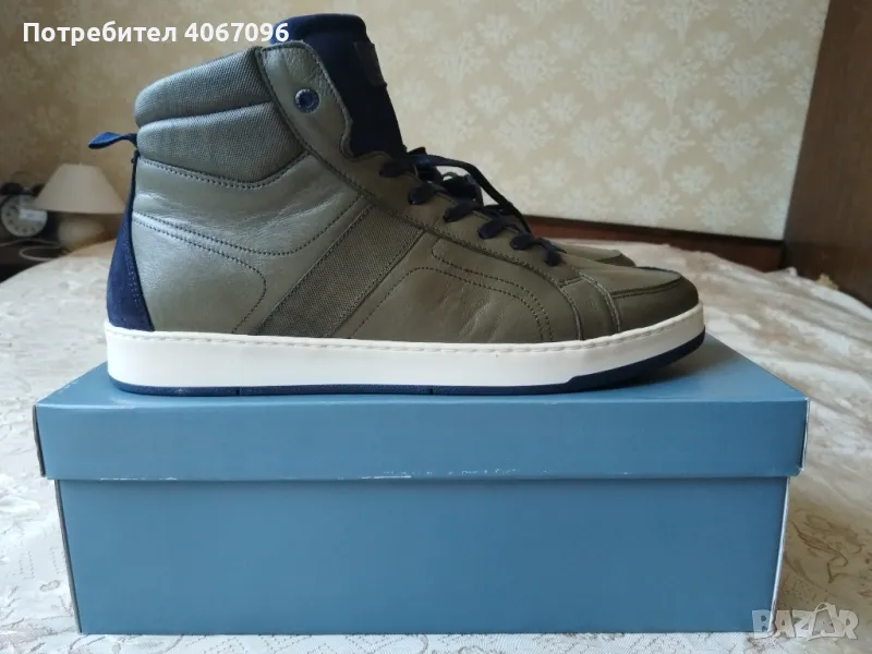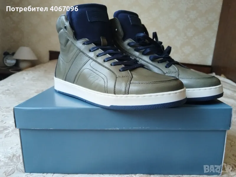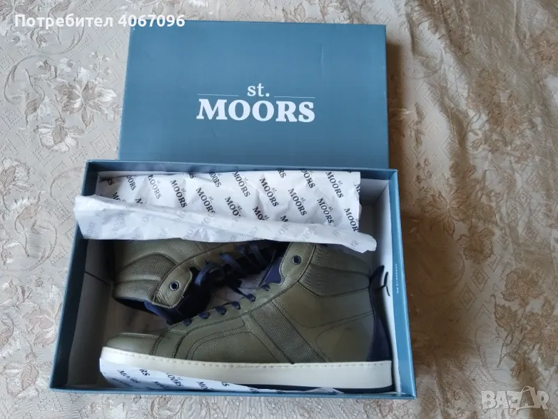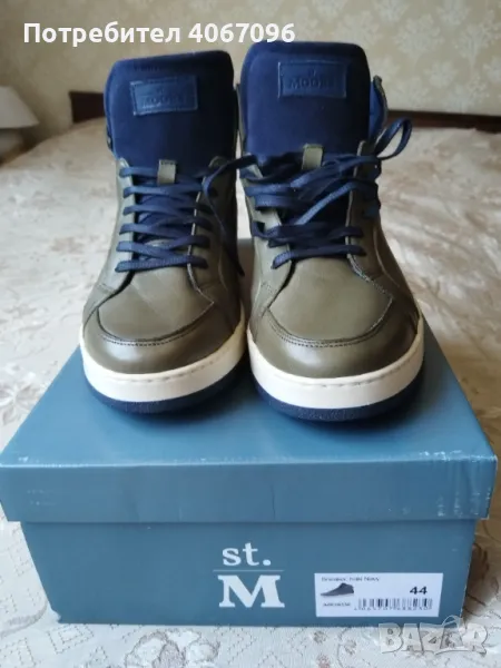 Високи маратонки/сникърси St.Moors (Португалия). Зелени, материал – естествена кожа, естествен велур и текстил. Подходящи за студено време. Шита подметка. Размер 44 - дължина на стелката 29 см. Състояние - НОВИ. Цена - 40 евро (не подлежи на коментар).