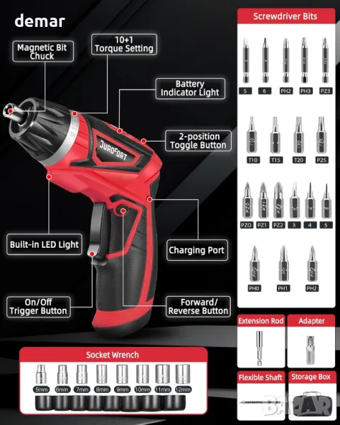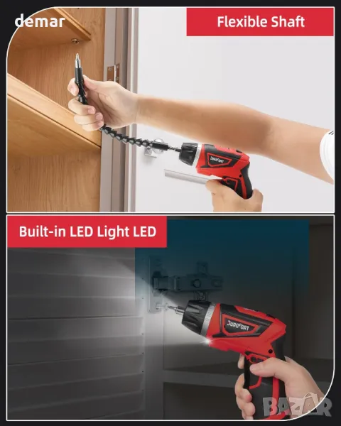 Комплект акумулаторен електрически винтоверт DuroFort 8V, с 30 накрайника и калъф