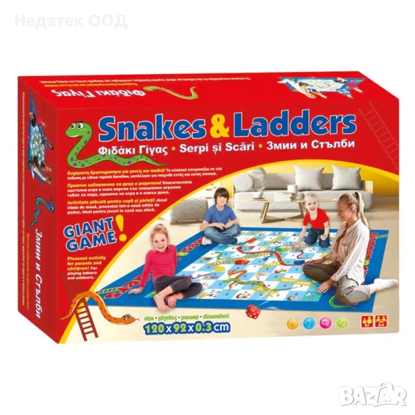 Настолна игра Змия. Класическият плот в нова версия със специална подова дъска, подходяща за игра на закрито и на открито за приятно занимание за родители и деца. Заровете и пионките не са включени.За 2-4 играча.