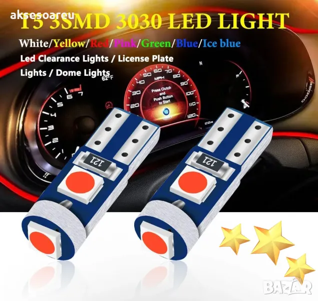 10 бр. малки габаритни крушки за арматурно табло T5 3SMD LED супер ярък 3030 LED за вътрешно осветле → Обява 47799264