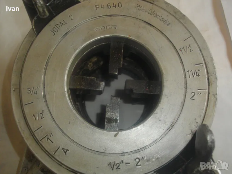 Цена на чешка старо качество резбонарезна плашка флашка пафта вентонарезка винторез за нарязване на резби на водопроводни тръби до 2 цола - JOPAL 2 - с поставен комплект ножове размери 1/2-3/4 цол - цена 399 лв. Ползавана, в добро работно състояние. Старото висококачествено чехословашко производство на NAREX. Тегло на