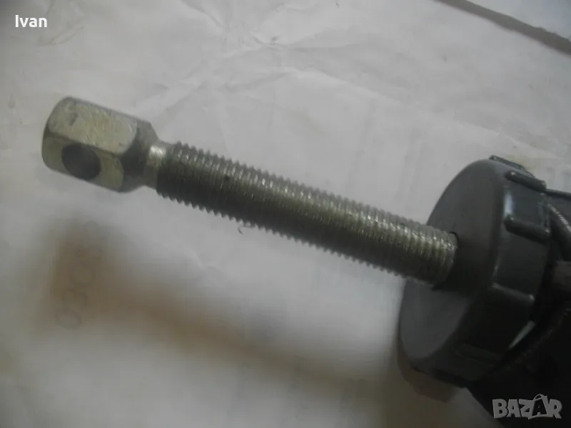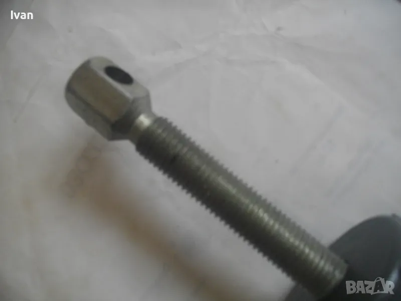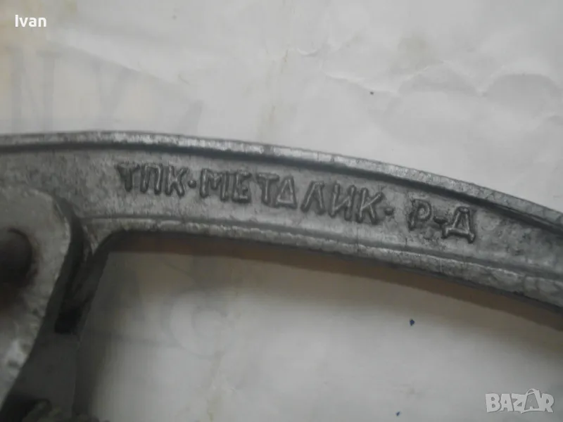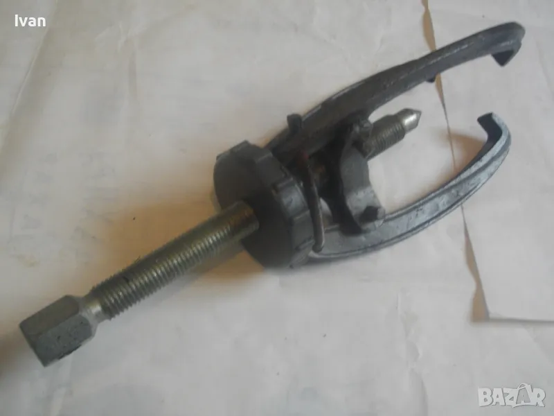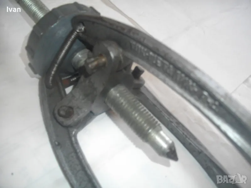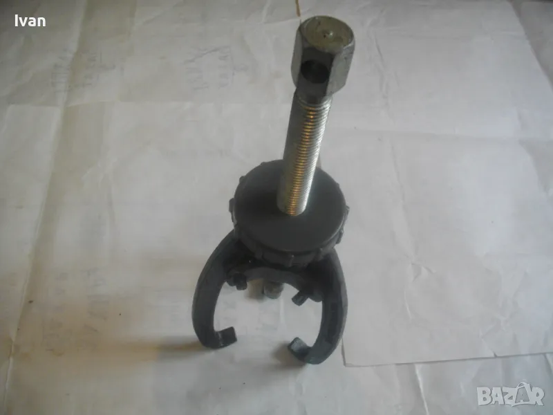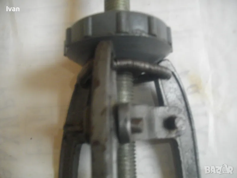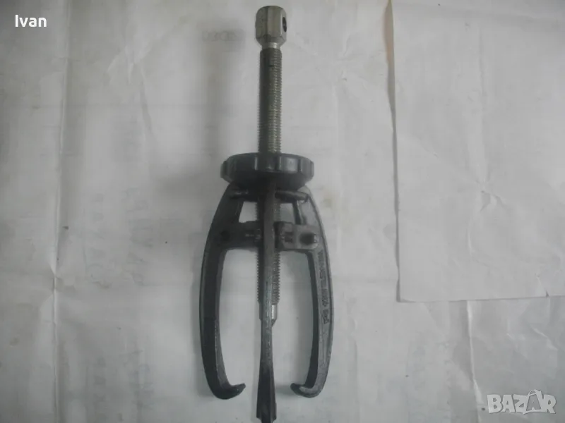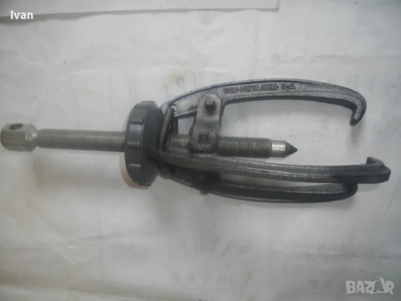 Цена на трираменна скоба българска Соц - НОВА - завод ТПК Металик Разград - масивна - цена 399 лв. Скобата е висок клас Соц производство. Маркировки ТПК Металик Р-Д ст40 - 150 - 20лв. Трираменна, масивна. Плътно дебело желязо на рамената. Дължина от главата на рамената до долу на крачетата - 21 см. Дължина на винта изцяло - 29 см. Пружини на рамената за бърз захват. Захват отгоре на винта - квадрат М24 с прорези за върток. Цялостна дължина на скобата с изцяло отворен винт 40 см. Разстояние между отделните челюсти рамена - 10 см. Захват на лагери 40-150мм. Скобата е съвсев нова, неизползвана инеупотребявана. В отлично работно състояние. Винтовият и пружинния механизми вървят съвсем леко, без никакво запъване. Резбата на винта няма абсолютно никакво износване.Тегло на скобата - 2,2 кг. Цена 399 лв.