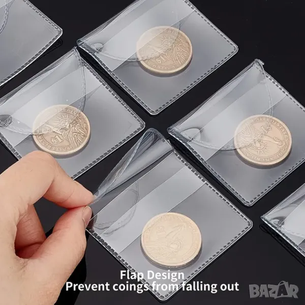 прозрачни джобчета за монети 5 х 5 см - 50 бр. опаковка → Обява 47800262