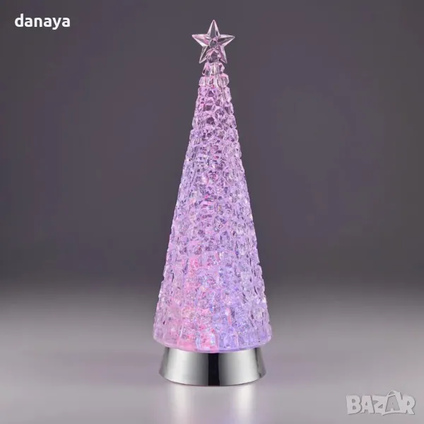 Добавете празнично сияние в дома си със светещата коледна елха с въртящи се брокатени частици и преливащи LED светлини! Тази уникална 32 сантиметрова елха съчетава ефирна красота с елегантен дизайн – прозрачната основа и блещукащите частици създават магична атмосфера, която имитира завихрянето на снежни снежинки. Елхата разполага с две настройки за светене: плавно преливащи многоцветни светлини, които оживяват празничната обстановка, и нежна жълта светлина за по-спокойна, уютна атмосфера. Върху върха ѝ блести звезда, завършвайки идеално дизайна. С компактна височина от 32 см и диаметър от 11 см, тя е идеална за декорация на всяка стая.