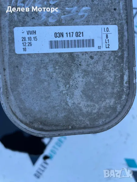 03N117021 Маслен охладител от Skoda Octavia 2.0 TDI, 150 кс., 6ск., 4x4, двигател CRM, 2016 г., 86 000 km, Шкода Октавия 150 hp., 6 sp., engine CRM, euro 6B в автоморга Delev Motors, между с. Каменар и с.Куманово гр. Варна.