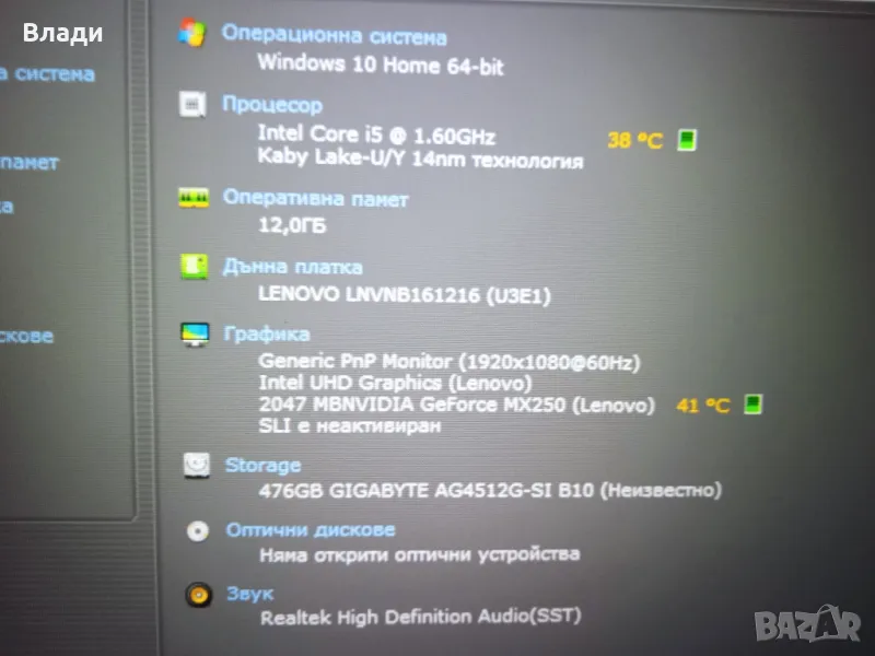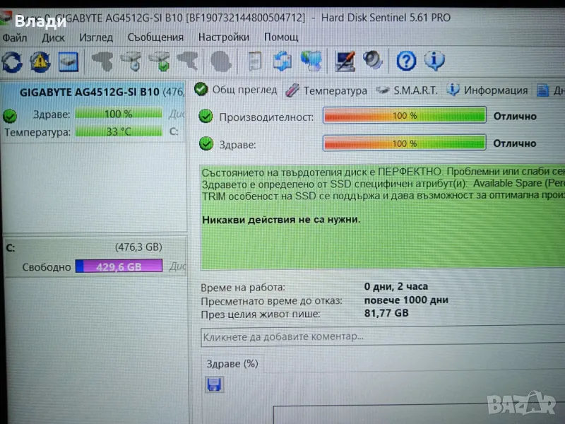 Инсталиран с Windows 64 bit,HDD Sentinel,Speccy и Aida 64,за да се тества преди да се плати.