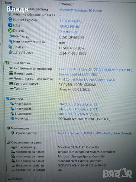 Lenovo IdeaPad S540-15IML FHD Intel Core i5-10210U/Nvidia MX250 2GB/12GB/512SSD отлична батерия