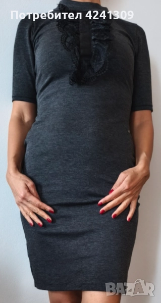 Много елегантна еластична рокля Arogans с декорация дантела, дължина 96см, размер S, цвят тъмно сив.