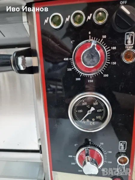 Продавам електрическа фурна за пици. -61x61 керамичен плот. -трифазна 6KWT - термостати до 500 градуса - външни размери 90/81/40 - тегло 57кг - два броя резервни нагреватели