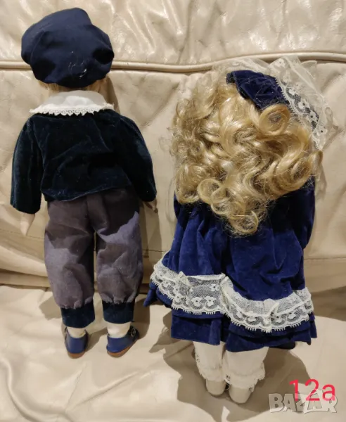 Височина на момичето 40 см., на момичето 36 см. Момичето има драскотина на лицето и забележка по едната обувка. Цена 18 евро бр. Двете 32 евро.