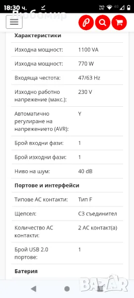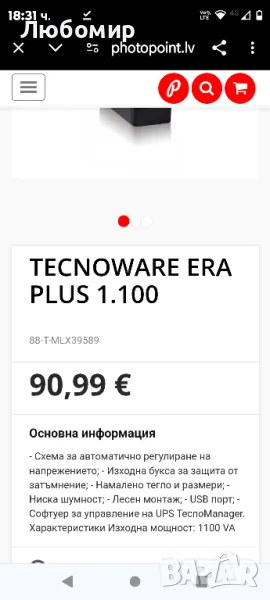 UPS TecnoManager.Схема за автоматично регулиране на напрежението; - Изходна букса за защита от затъмнение; - Намалено тегло и размери; - Ниска шумност; - Лесен монтаж; - USB порт; - Софтуер за управление на UPS TecnoManager. Характеристики Изходна мощност: 1100 VA 770w