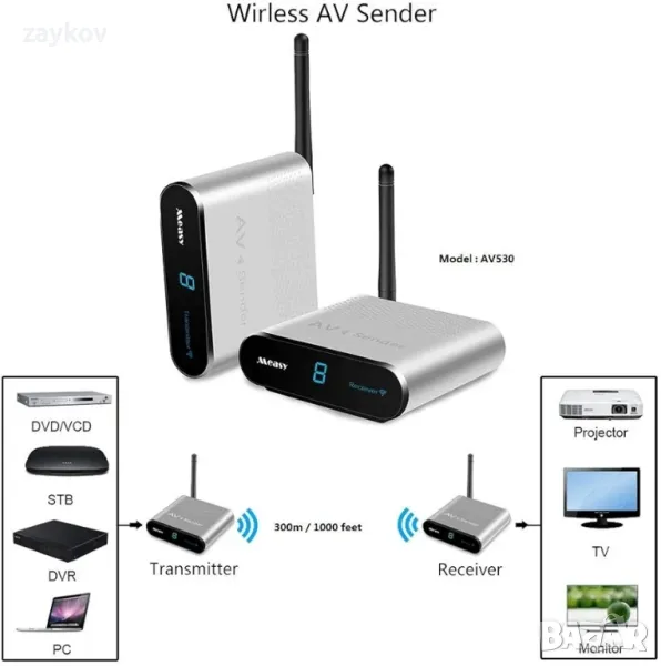 measy AV530 Безжичен AV предавател и приемник ТВ предавател и приемник до 300m