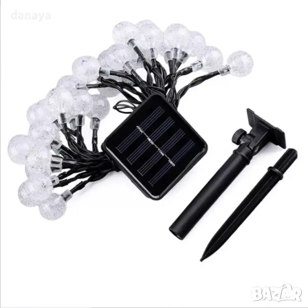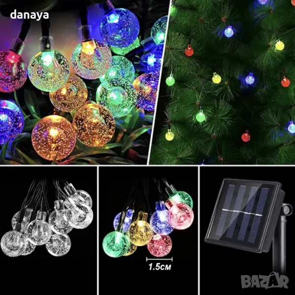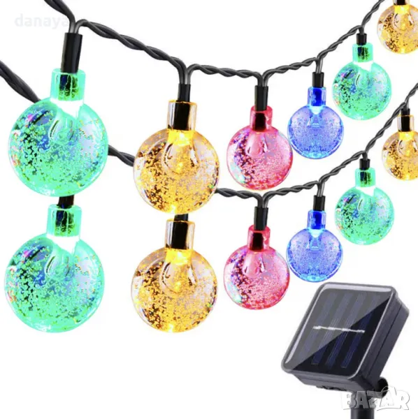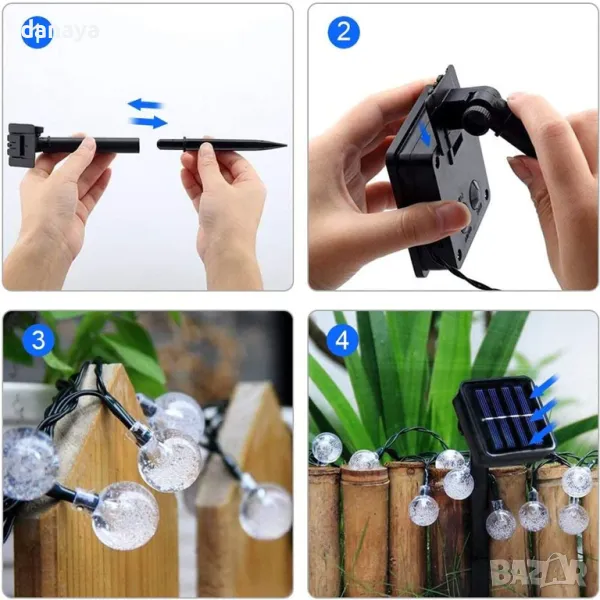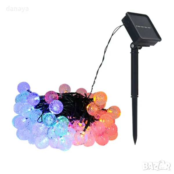 Гирляндът е захранван от слънчева енергия, така че няма нужда да се притеснявате за електрически разходи. Соларният панел се зарежда през деня и осигурява светлина през нощта.