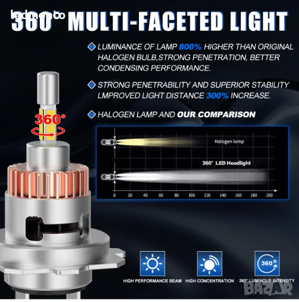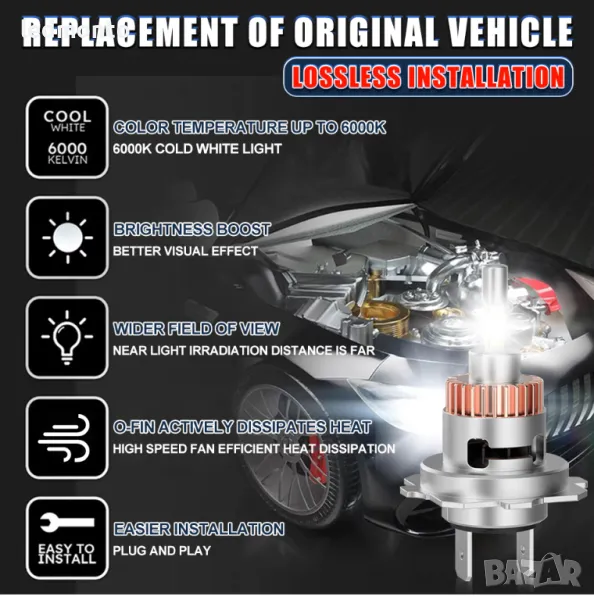 Тагове: H7 LED крушки, H4 LED фарове, 360 градуса LED светлини, Plug & Play LED, Canbus LED, 6000K бяло осветление, 12V супер ярки крушки, 30000LM, CSP чипове.