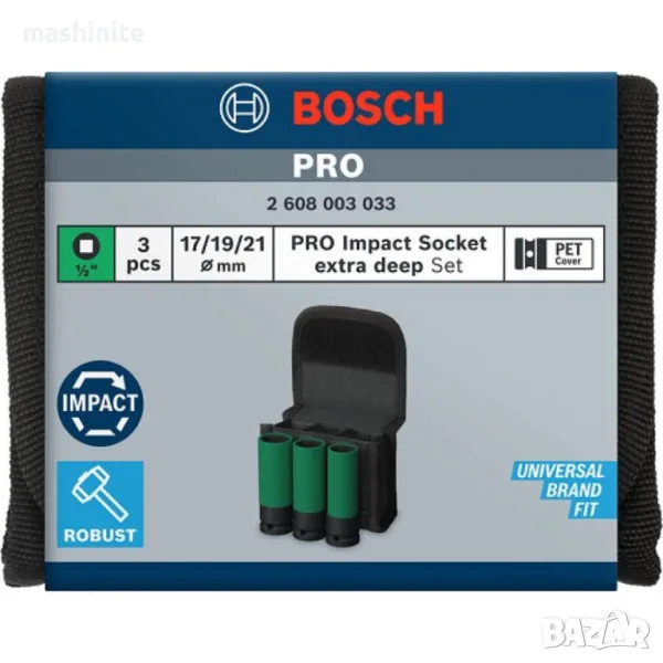 Комплект ударни вложки 17/19/21 mm, 3 части 1/2`` Bosch