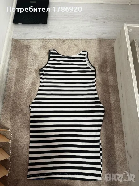 Продава се дамска рокля без ръкави Desigual с ярък, цветен геометричен дизайн. Роклята включва: