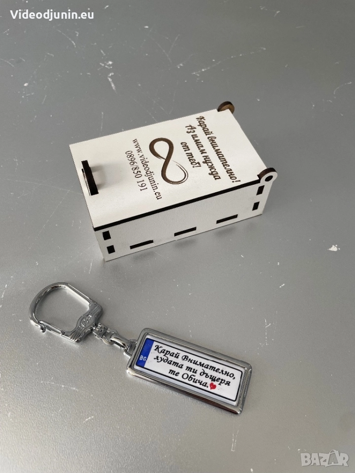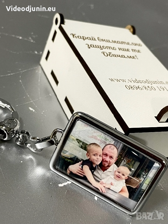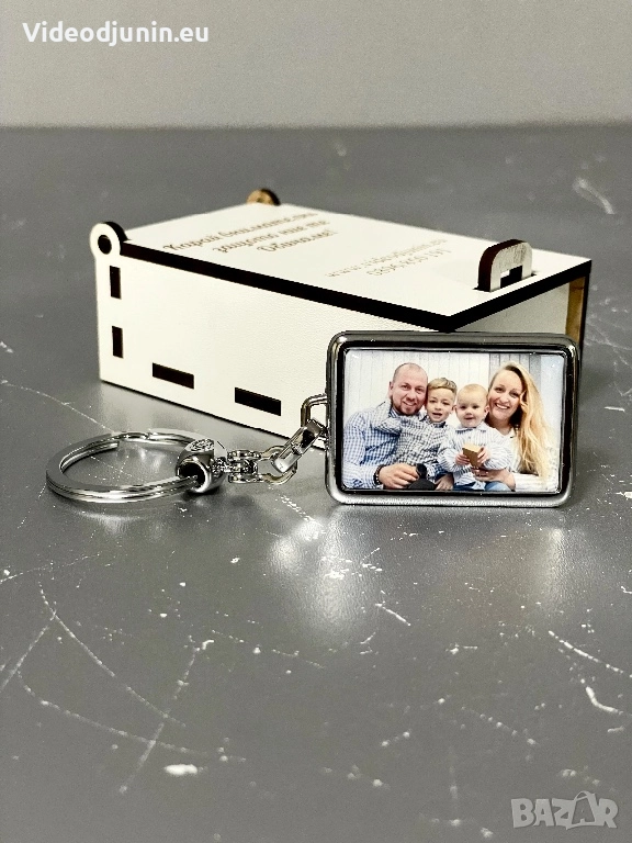 Ключодържател със снимка и подаръчна кутийка - гравирана и персонализирана по ваши предпочитания, като инициали, текст и т. н. Уникален и стилен сувенир една страхотна идея за подарък на любим човек. Не е нужно да имате специален повод за да направите подарък, достатъчно е да поискате да изразите обич и благодарност към любим и скъп за вас човек. Ключодържател със снимка или текст по ваше желание, към който има и подаръчна гравирана кутия по ваше желание- текст, пожелание, послание и. т. н. Позволете на красивите и любими спомени да остана във вечността. Създайте безброй усмивки и моменти. Запазете красиви и любими спомени.