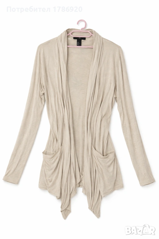Продавам елегантна дамска жилетка с удължен дизайн от H&M в нежен бежов/екрю цвят.