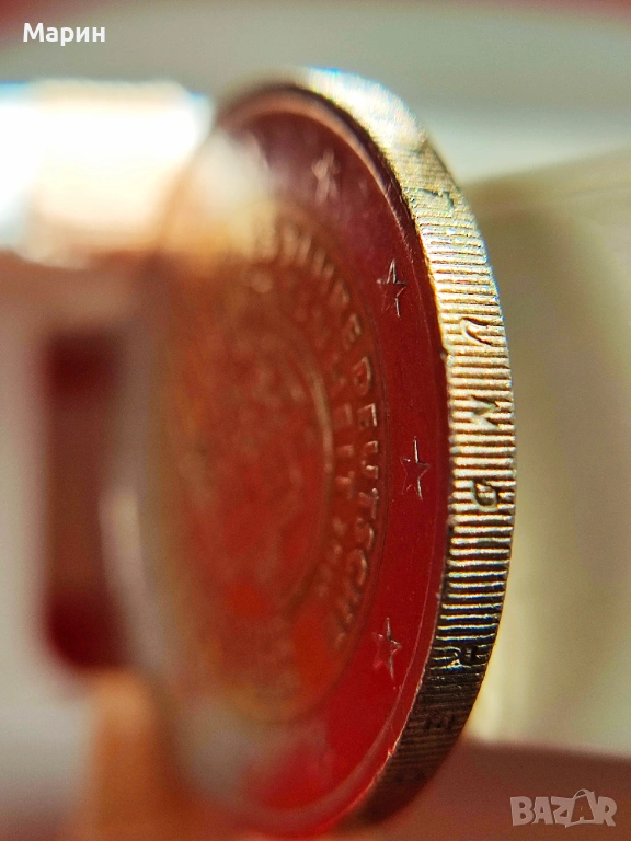 снимката на законно емитираните монети на монетният двор на Германия в Мюнхен (mint mark D) – снимка на монетата „В“.