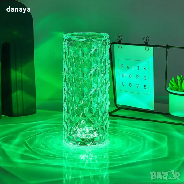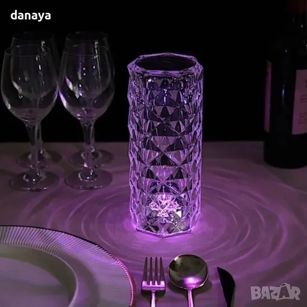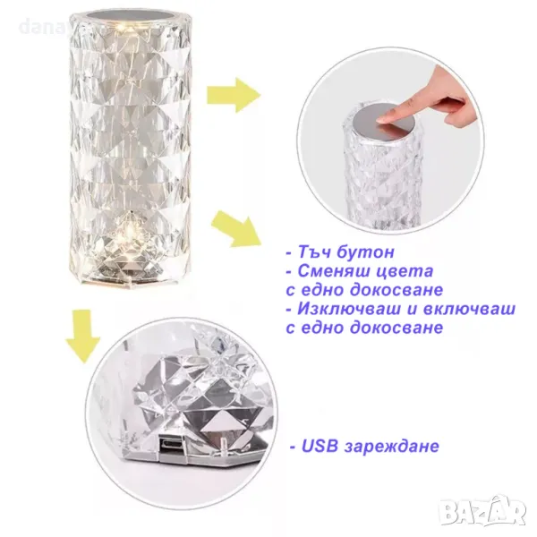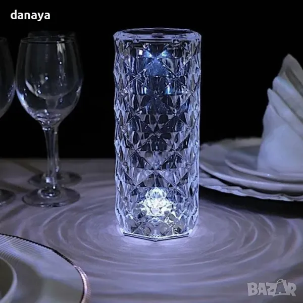 5426 Кристална нощна лампа USB зареждане, тъч управление, 16 см