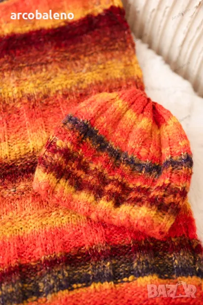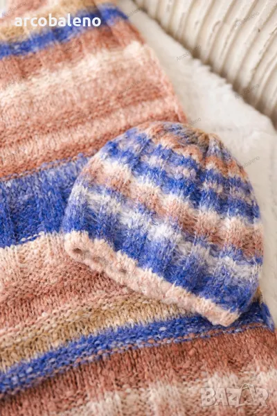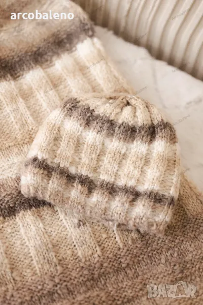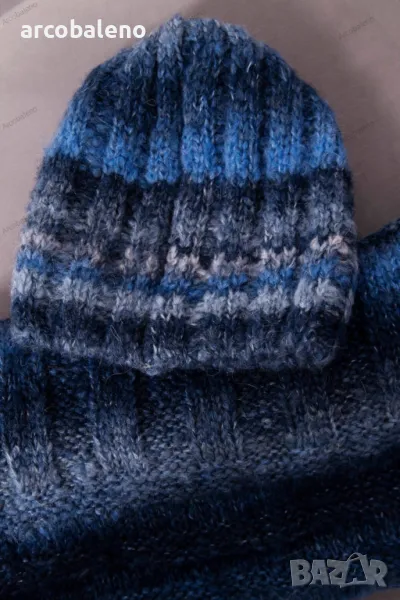Предлагаме ви топъл комплект, състоящ се от шапка и шал. Комплектът се отличава с атрактивен външен вид и солидна изработка. Много красив десен ще направи комплекта модерен и практичен аксесоар за много сезони. Размерът на шапката и шала е универсален.