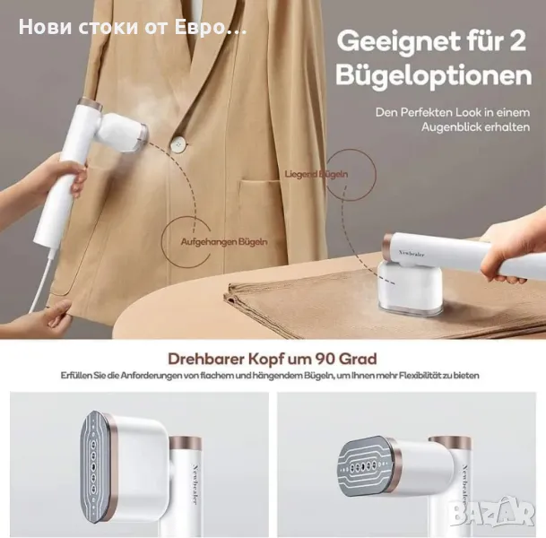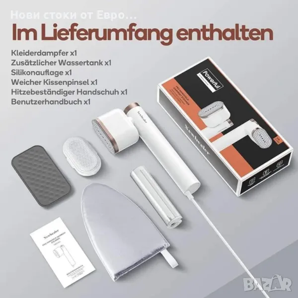 Newbealer Steamer Steamer Иновативната парна ютия ви предлага както мощна парна ютия, така и функция за сухо гладене. С функцията 2 в 1 можете да изгладите или освежите дрехите си според нуждите. Това универсално устройство спестява място и прави гладенето по-лесно от всякога! Само 20 секунди за нагряване до 150 °C - за оптимална производителност в Allta Мощен, лесен за използване: тази преносима ютия за дрехи има силна мощност от 1200 вата и 120 ml резервоар за вода за 10 минути непрекъсната пара, което прави живота ви по-удобен и по-лесен. Чакайте по-малко и повече време, за да се насладите на живота. И тази преносима парна ютия за дрехи има кабел с дължина 1,8 м, така че можете да я използвате удобно у дома или когато пътувате Елиминира безпроблемно упоритите бръчки: въртяща се на 90° парна глава за вертикално или хоризонтално изпаряване. Керамичната плоча с диамантено покритие се плъзга без усилие върху деликатни тъкани, като върхът ви позволява удобно да гладите маншети, яки, джобове, плисета и зоните между копчетата. Удобна, устойчива на висока температура силиконова подложка ви позволява да оставите вашата парна ютия с плочата за гладене обърната надолу, което я прави ефективна и винаги готова за употреба 【360 ЗАЩИТА ОТ ТЕЧОВЕ И ЛЕСЕН ЗА ИЗПОЛЗВАНЕ】Преносимият текстилен уред за пара е оборудван с уникална технология против течове, капки и преливане, което ви позволява да парите от всякакъв ъгъл, без да се притеснявате за изтичане. Може да се използва и като ютия, със или без пара. В допълнение, бутонът за включване/изключване със светлинен индикатор може лесно да се натисне, създавайки непрекъснат поток от пара ПЕРФЕКТЕН ЗА ПОДАРЪК Newbealer Traveл Garment Steamer разполага и с фуния за пълнене с вода, която идеално допълва вашия Pro уред за пара за дрехи.
