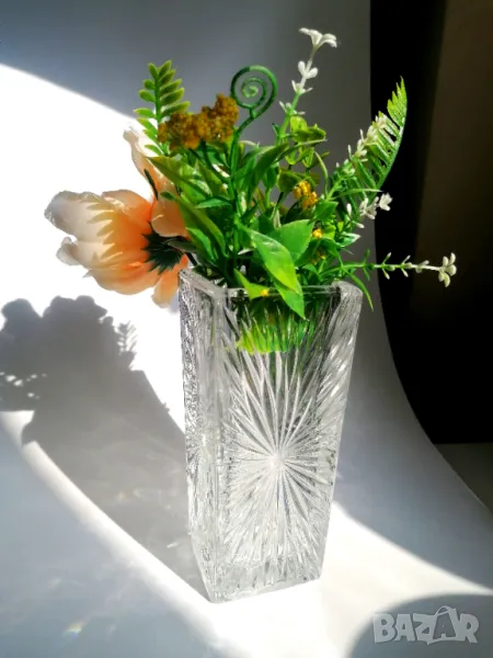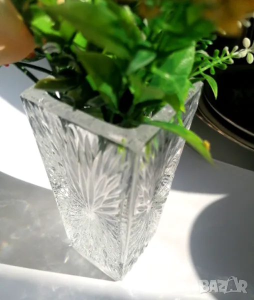 Винтидж кристална ваза със симетрични орнаменти✨