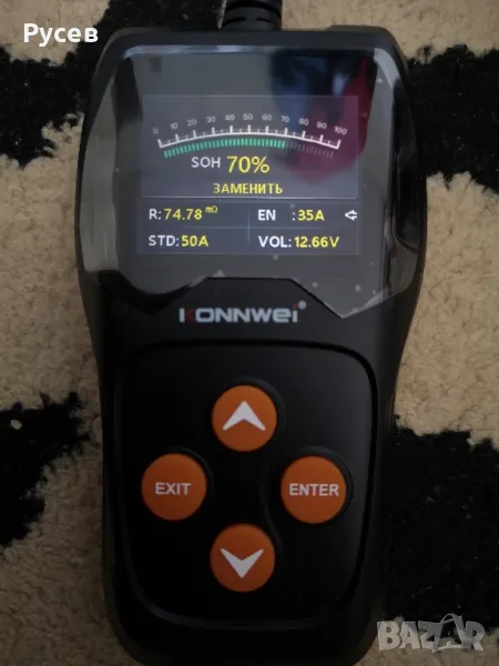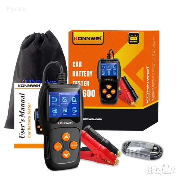 Konnwei KW600 - Електронна товарна вилка за тестване моментното състоянието на 12 волтови акумулатори - Конвенционални, EFB, AGM, AGM Spiral, GEL акумулатори от 1,2 Ач до 240 Ач , и задаване на стартов ток от 10А до 2000А по стандартите EN, DIN, CA, CCA, JIS, SAE, IEC, BCI, MCA. Уредът може да тества също зарядната и стартиращата система на автомобила, като показва резултатите в графична форма.