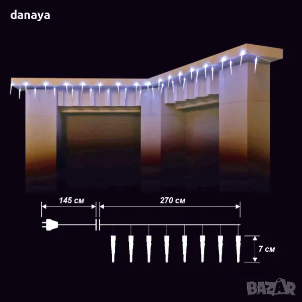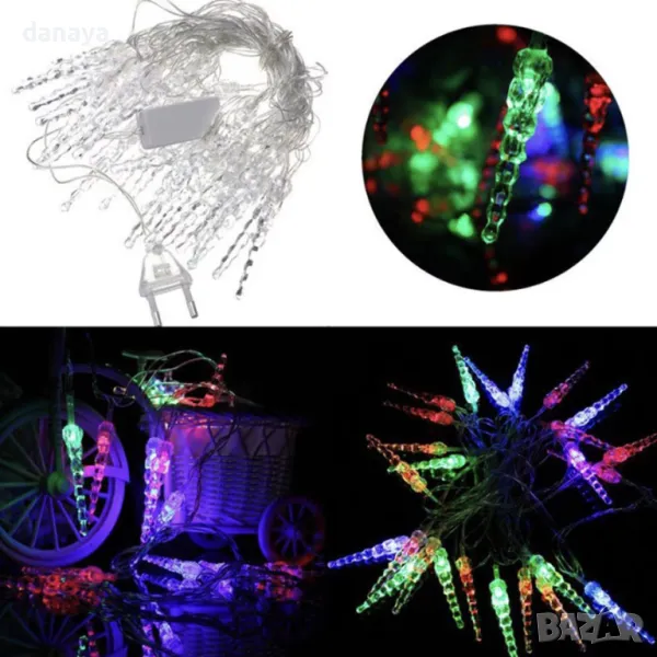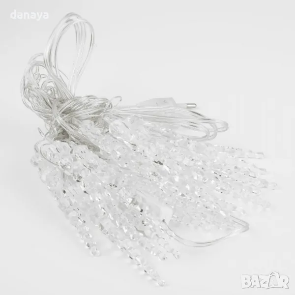 коледни лампички висулки! Тази красива гирлянда е съставена от 28 LED лампички с форма на ледени висулки, подредени в линия с дължина 270 см. Всяка висулка е с дължина 7 см, придавайки нежна и бляскава светлина на вашия декор. Предлагаме два модела за различни настроения – класическа бяла светлина за елегантност и многоцветни светлини за забава и настроение. С прозрачен кабел с дължина 145 см и работа на ток, тези лампички са перфектният избор за уютна и празнична украса. Направете всеки ъгъл на дома си магичен с тази светеща украса за Коледа!