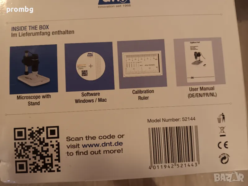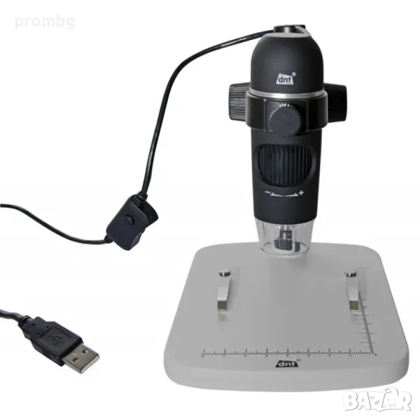 Размери: Микроскоп: 110 x 35 мм;Стойка: 175 x 140 x 110 мм. Тегло: 171 g. Цвят: черен. Включено в доставката: DigiMicro Profi, стойка, USB кабел,ръководство за потребителя, софтуер.