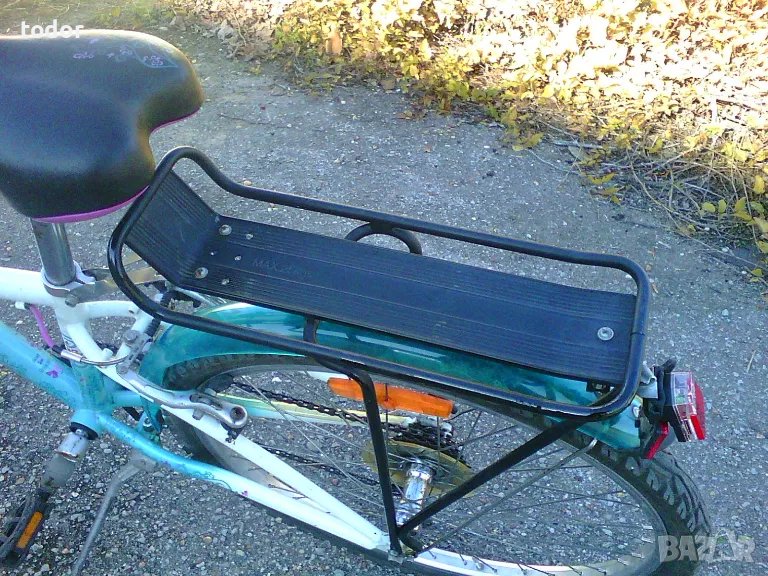 велосипеда е за хора до 150см. калници,багажник,звънче,светлини,степенка.6бр. скорости. подходящ за момичета и момчета. гумите му са като нови,две еднакви.вибреѝк спирачки.сложих му и кошница отзад, на багажника.цена-135лв.